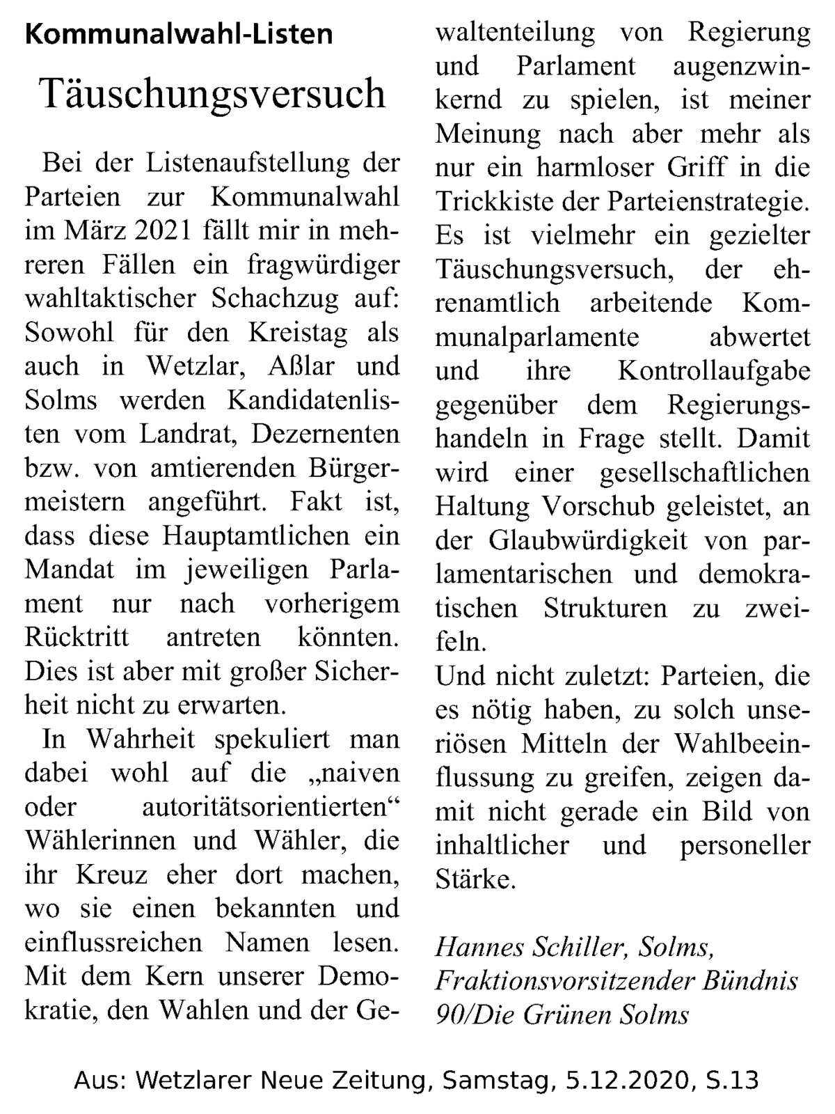 Dazu zwei Beispiele zum Verhalten der SPD im Solmser Stadtparlament: